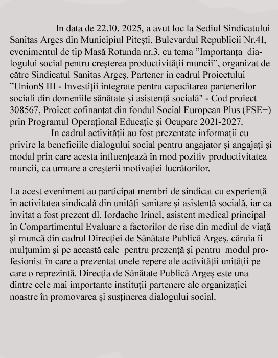 Telefon: 0248287150 / 0248219448 Sindicatul SANITAS Arges